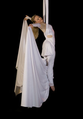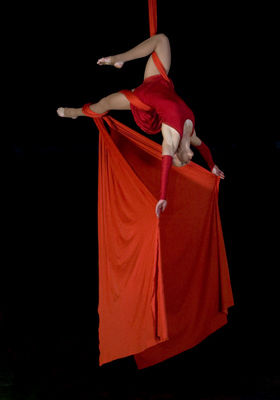 Beschreibung: Tänzerisch elegante Luftartistik am Vertikaltuch für feierliche Anlässe wie Gala, Events, Einweihung von Hallen und Gebäuden, Firmenfeiern, besondere Messepräsentationen ...