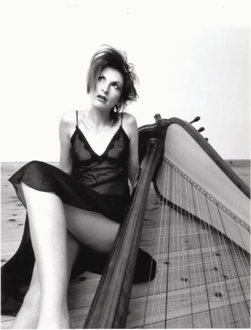 Simonetta spielt seit 1987 Harfe (und seit 1980 Klavier)