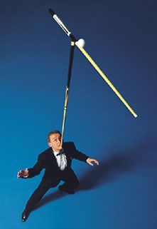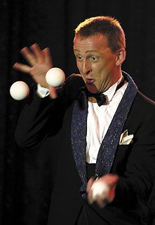 Verschmitzter Charme, Champagner und Charisma lassen seine Jonglage zu einem Hochgenuss werden.