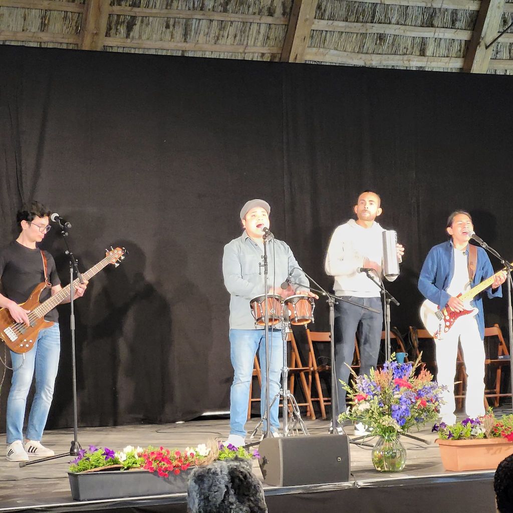 Beschreibung: Los! Pachamama. Carlos, Víctor, Otto und Santiño, aus Kolumbien, Mexico und Perú. Eine Latin-Cumbia Band wo du eine musikalische Reise durch die Länder Südamerikas erleben wirst. Mit Bass, Bongos, Geige, Güiro, Gitarre ...