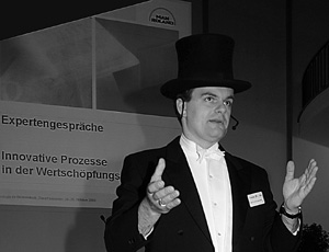 Denn auf der Basis Ihrer umfassenden Informationen werden die Elemente der Show so entwickelt dass alles gesagt wird. Sei es dass an jedem Messetag verschiedene Botschaften kommuniziert werden oder dass z.B:je nach Tageszeit wechselnde Themen aufgegriffen werden.