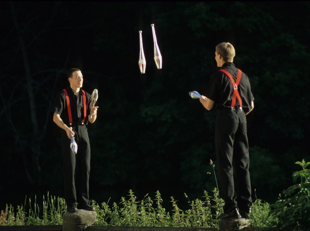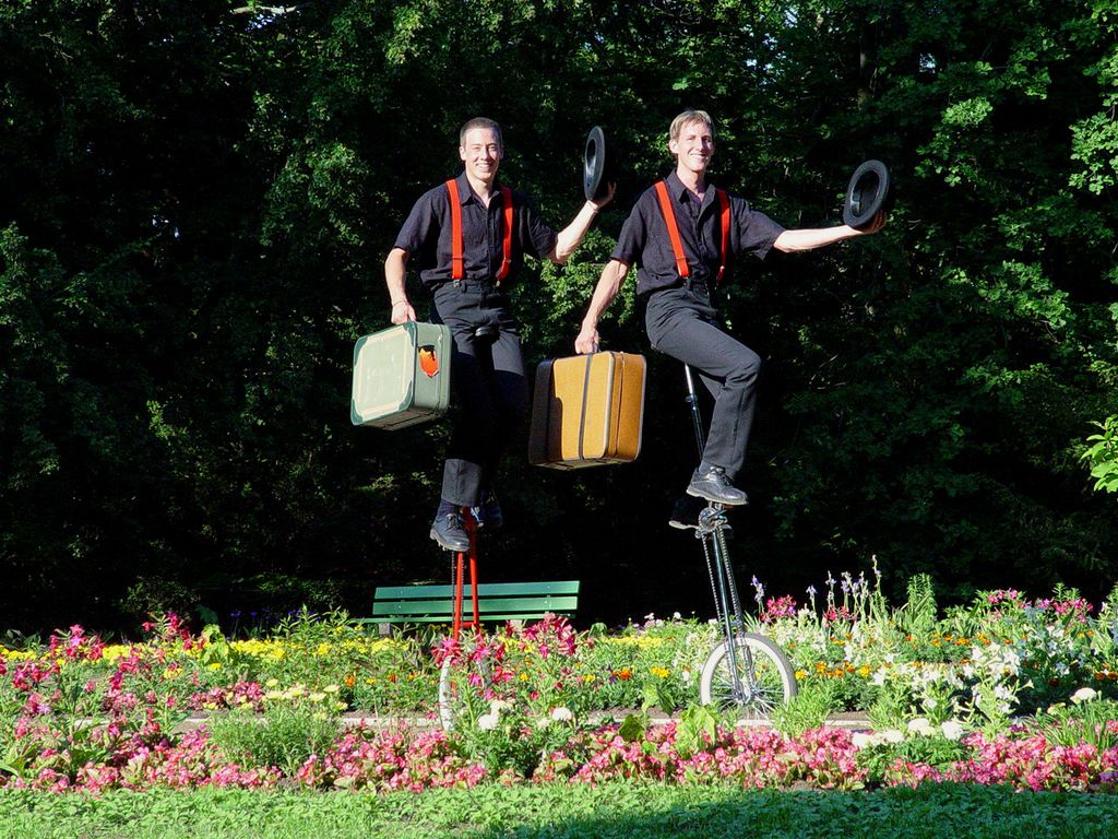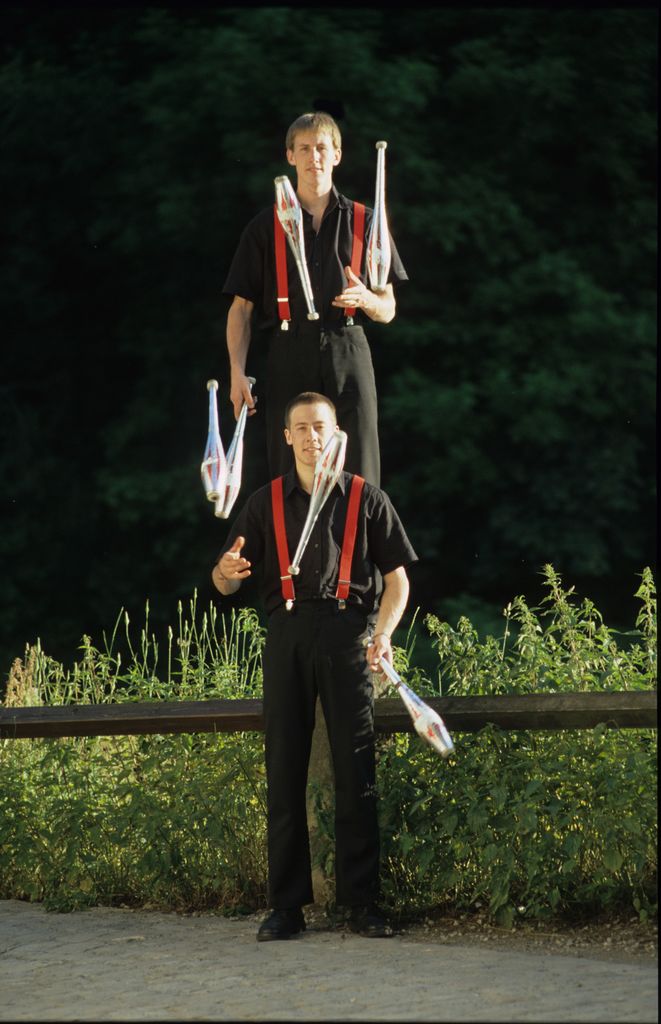 Passing by, das sind Fabian Rieger und Tobias Thiel. Gemeinsam sind die beiden Bamberger Jongleure ein eingespieltes Team und begeistern immer wieder mit professionellen Jonglier-Shows. Egal ob Feuershow, Hochrad-Artistik, Diabolo oder Keulen-Passing - sie