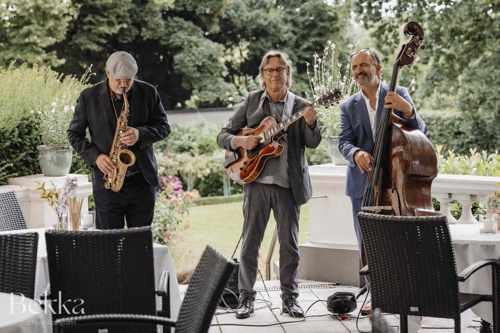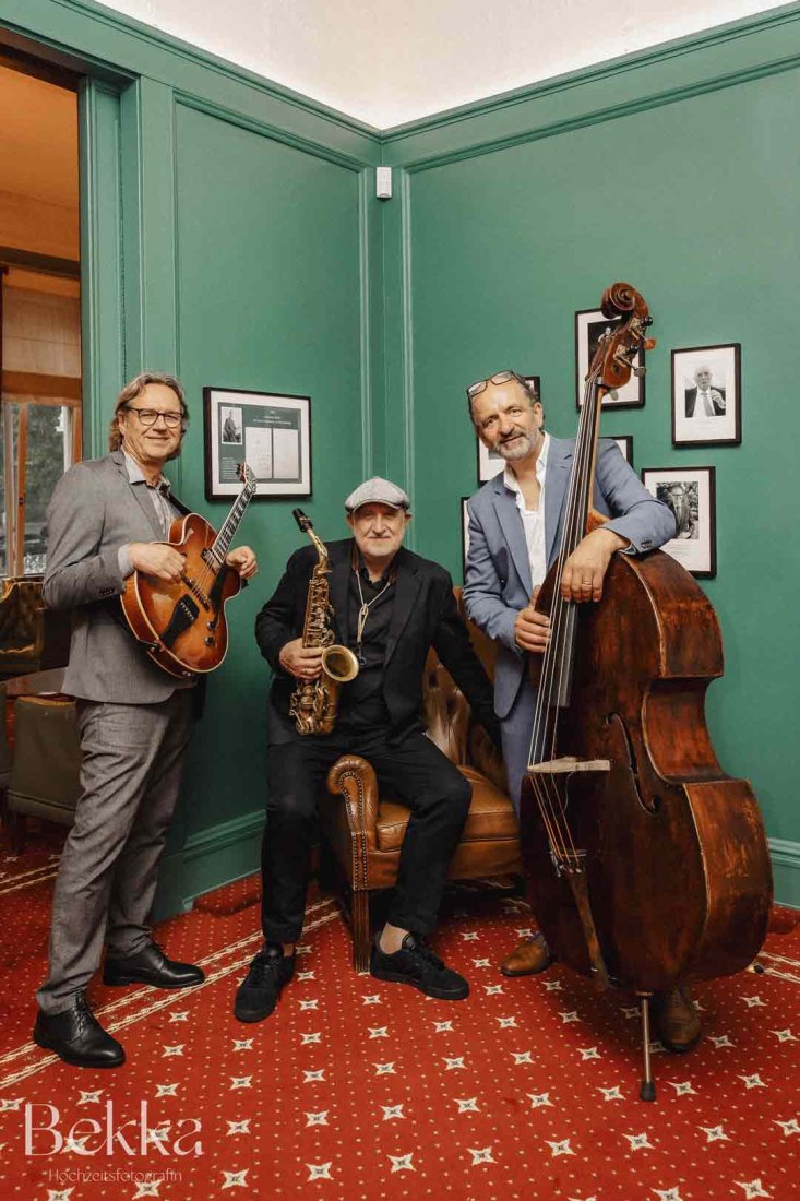 Beschreibung: Lounge Jazz Band für Empfang oder Event. Hochzeit begleiten oder einfach zuhören. Der Sound der Band ist so leicht und transparent, dass er über die gesamte Dauer einer Veranstaltung für entspannte Laune sorgt. Die drei ...