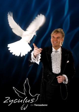 Wenn Zyculus seine Ärmel hochkrempelt, dann sieht das nicht nach Arbeit aus. Mit spielerischer Leichtigkeit und eleganter Selbstverständlichkeit zaubert er weiße Tauben, Kaninchen und kleine Hunde hervor. Charmant und voller Spannung ist seine tierische Show, ein Höhepunkt wird vom nächsten übertroffen. Ein unvergessliches Vergnügen für Zuschauer von fünf bis 95!